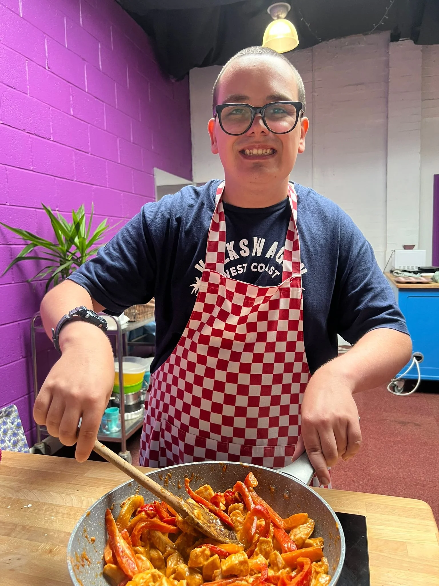 “Harry has been at Five Acres since it opened on the 17th May 2021. He enjoys going everyday as there's lots to do, especially going shopping then helping to cook the lunch, then bake delicious cakes and biscuits. He is named 'King of the washing' as he likes doing the washing. He thoroughly enjoys going on the Whitby trips with Five Acres, especially the 2p machines, the chippy teas and having ice cream on the way home. He has made new friends being at Five Acres and seen some old friends from school. Harry is excited for the new site at Braffaton to be finished and open. From a parents point of view it's a piece of mind he's in a safe environment and which he can socialise with friends safely.”
